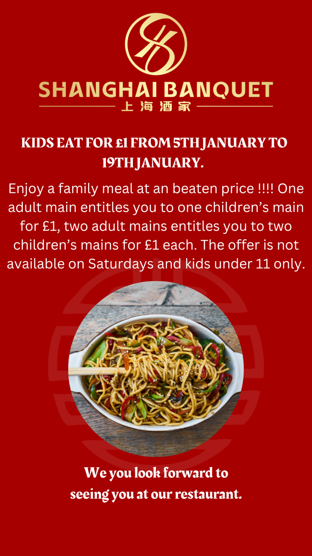 Adult £23.99 | Kids 11 & Under Eat Half Price